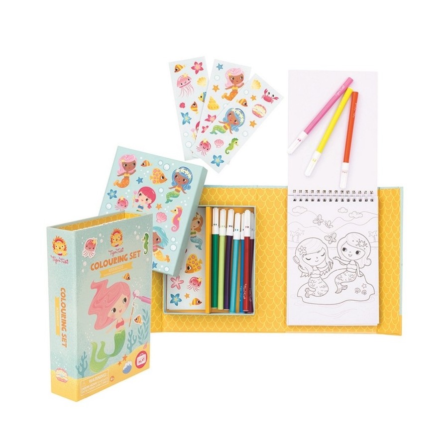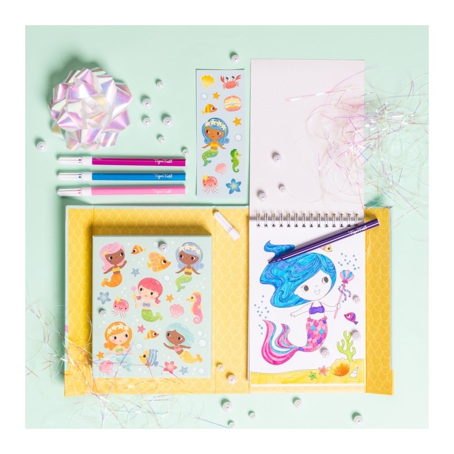 Pequenos livros, grande diversão! Estes conjuntos de colorir incrivelmente ilustrados estão repletos de actividades, marcadores coloridos e autocolantes. Tudo pensado para manter os mais pequenos felizes em movimento. Uma aventura que espera por ti, com lindas sereias prontas para serem coloridas pelos mais pequenos.
