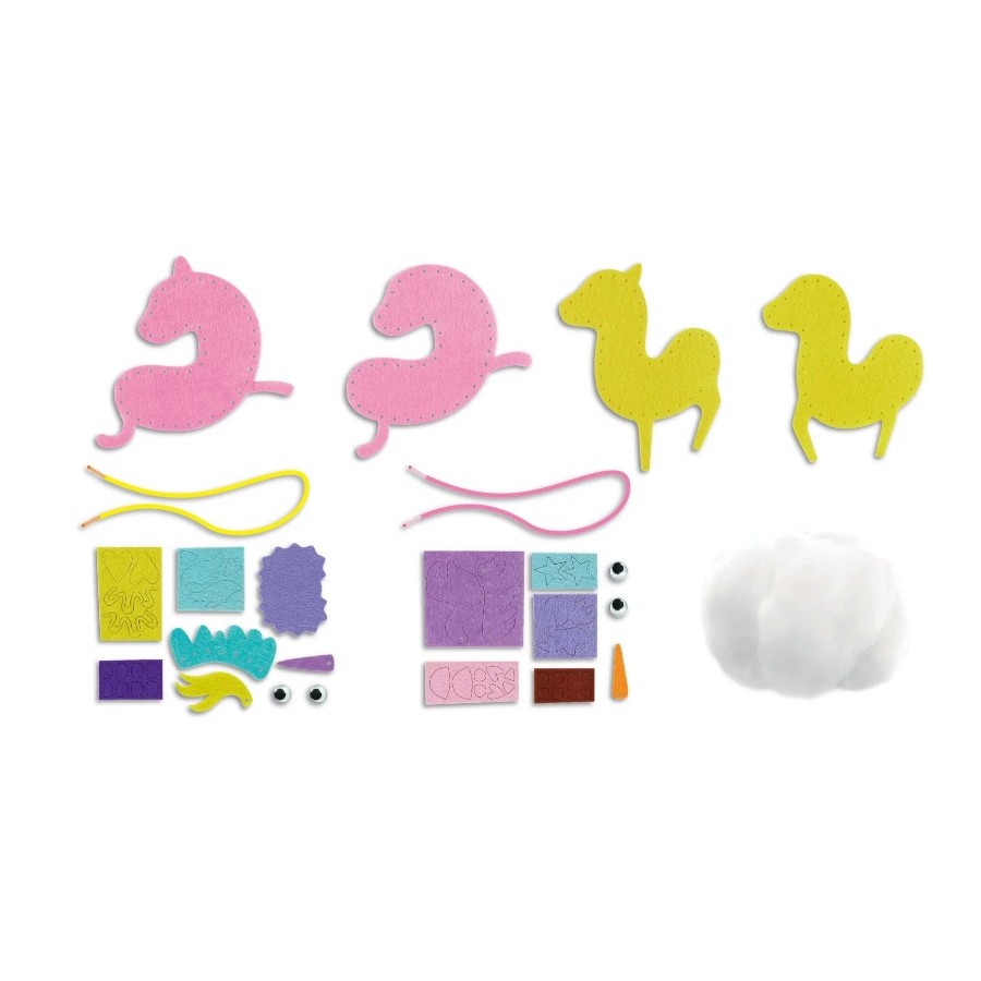 Contém: Formas de feltro pré-cortados e perfurados, linha; enchimento, autocolantes, olhos de plástico, 1 manual de instruções | Dim. embalagem: 13x19x5cm | Idade: 3-15 anos