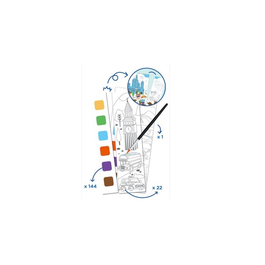 Gostas de pintar, então estes bloquinhos de desenhos para colorir com aguarela são para ti. Através da pintura as crianças brincam e desenvolvem a imaginação, através da combinação de cores para criar seu próprio mundo. Pequeno e leve o suficiente para pintar em qualquer lugar, contém bloco ilustrado, paleta de cores em cada página e um pincel para criar uma experiência inesquecível, tudo isto enquanto trabalha a concentração.