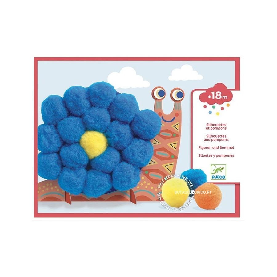 Contém: 3 figuras cartonadas grossas de animais (25x17cm) , 50 pompons com 4cm de diâmetro, instruções passo a passo | Idade: 18 meses - 3 anos | Dim Embalagem 29 x 23cm