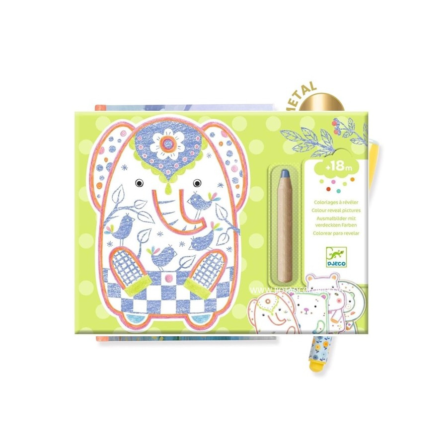 Um conjunto com 12 imagens para colorir com um lápis de cor grande, adequado para crianças pequenas. A criança pinta os animais selvagens usando o lápis para descobrir o que está escondido. É mágico: o lápis apenas marca determinadas áreas, aparecem padrões e revelam (...)