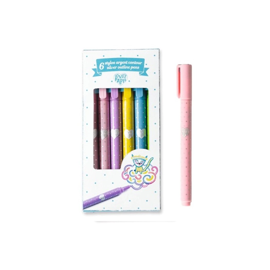 CANETAS PRATEADAS COM CONTORNO DE COR