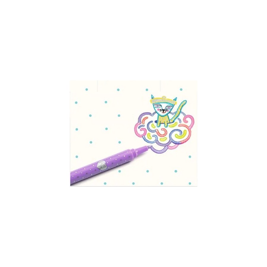 6 canetas prateadas com cabo (vermelho, amarelo, verde, azul, rosa e roxo) em que as cores realçam as suas criações!