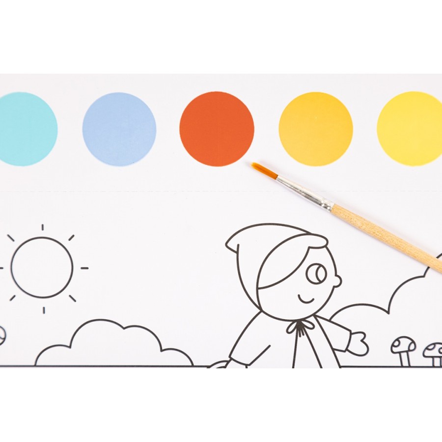 Tudo o que precisas para as tuas primeiras atividades de pintura, numa abordagem simples, prática e sem sujar nada! Basta molhar o pincel em água, passar numa das 6 cores e colorir os desenhos. Tudo pronto a usar, num prático bloco com 18 desenhos destacáveis, que poderás levar contigo para onde quiseres!