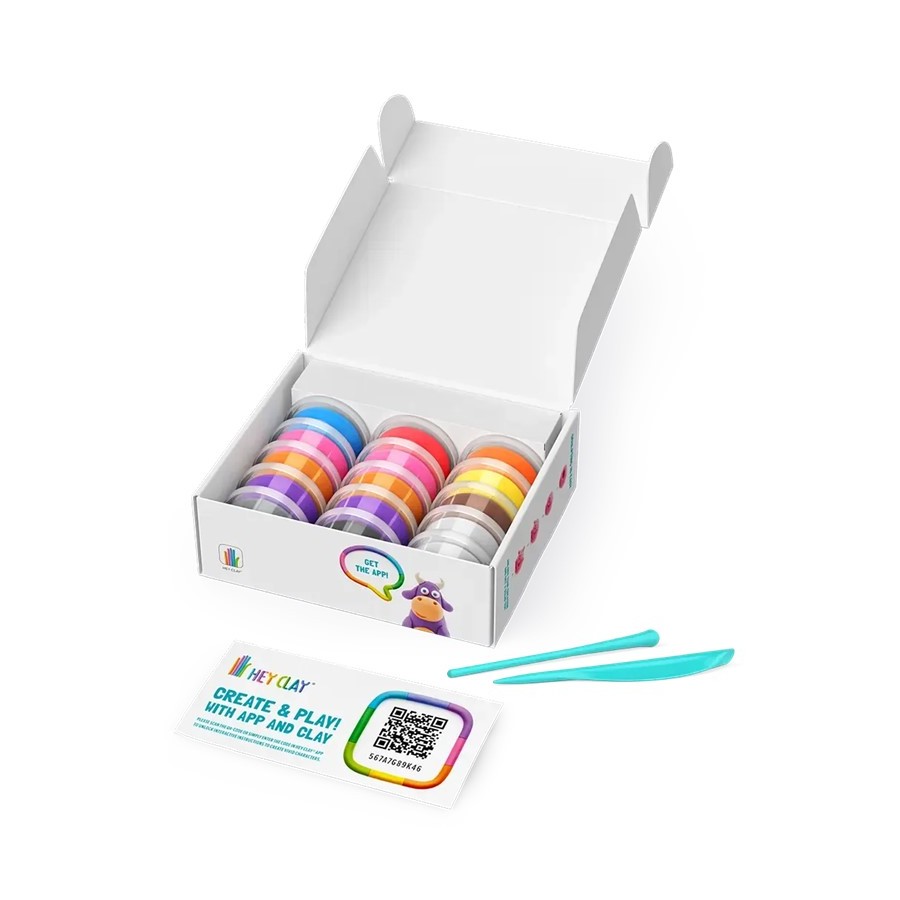 Contém 15 cx de massa colorida | Indicada para crianças a partir dos 3 anos | Descarregue a APP Hey Clay e modele com apoio do aplicativo, sem anúncios.