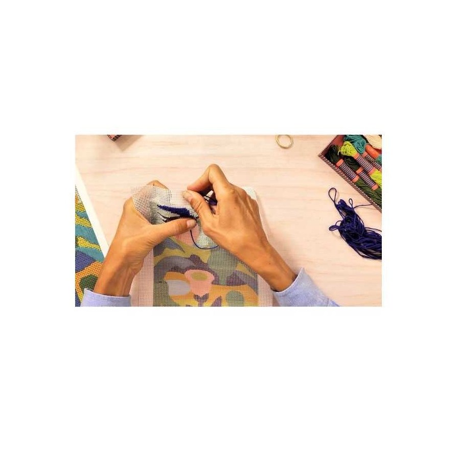 Aventure-se na arte do bordado e crie, ponto a ponto, uma obra repleta de cores, no seu próprio ritmo, em casa. O Atelier 65 oferece uma introdução a esta técnica. O bordado em tela consiste em bordar um desenho usando fios contados em tecido estampado ou texturizado, com agulha e fios coloridos. Ponto a ponto, o desenho ganha vida, criando uma peça rica em texturas e cores. E para guiá-lo em cada etapa, um tutorial em vídeo ensina as técnicas corretas.