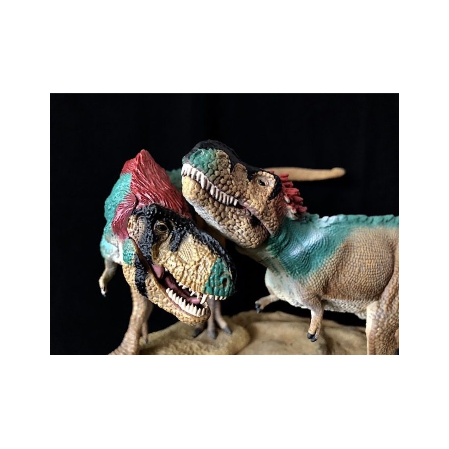 Uma fantástica réplica do Dinossauro Tyrannosaurus Rex com penas, com mandíbula móvel, à escala 1:40