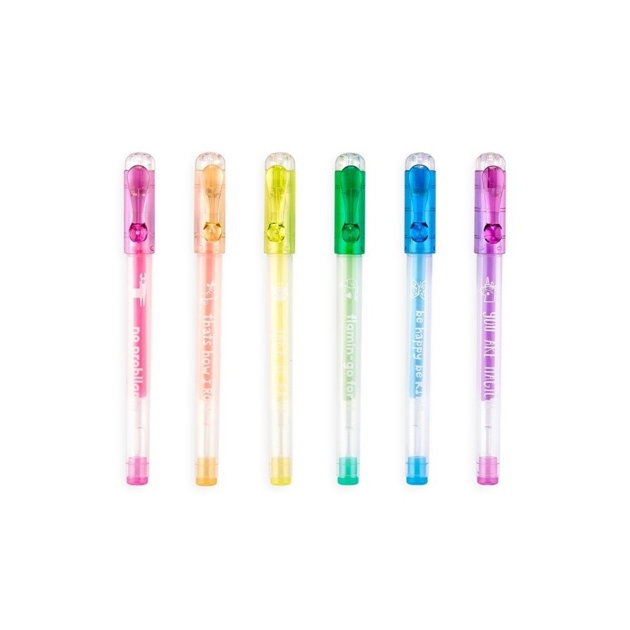 As Canetas Mini Gel Funtastic Friends trazem aromas frutados para a escrita, rabiscos e muito mais. Este conjunto de 6 simpáticas canetas de gel pastel irá certamente deliciar e inspirar. Adequado para maiores de 6 anos | Marca ooly