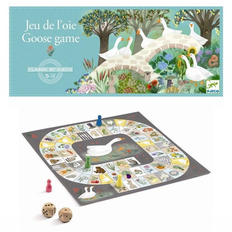 O famoso jogo da glória (ou jogo do ganso, com ilustrações fabulosas da djeco. Para 2 a 4 jogadores. Tempo médio de jogo: 10 minutos.