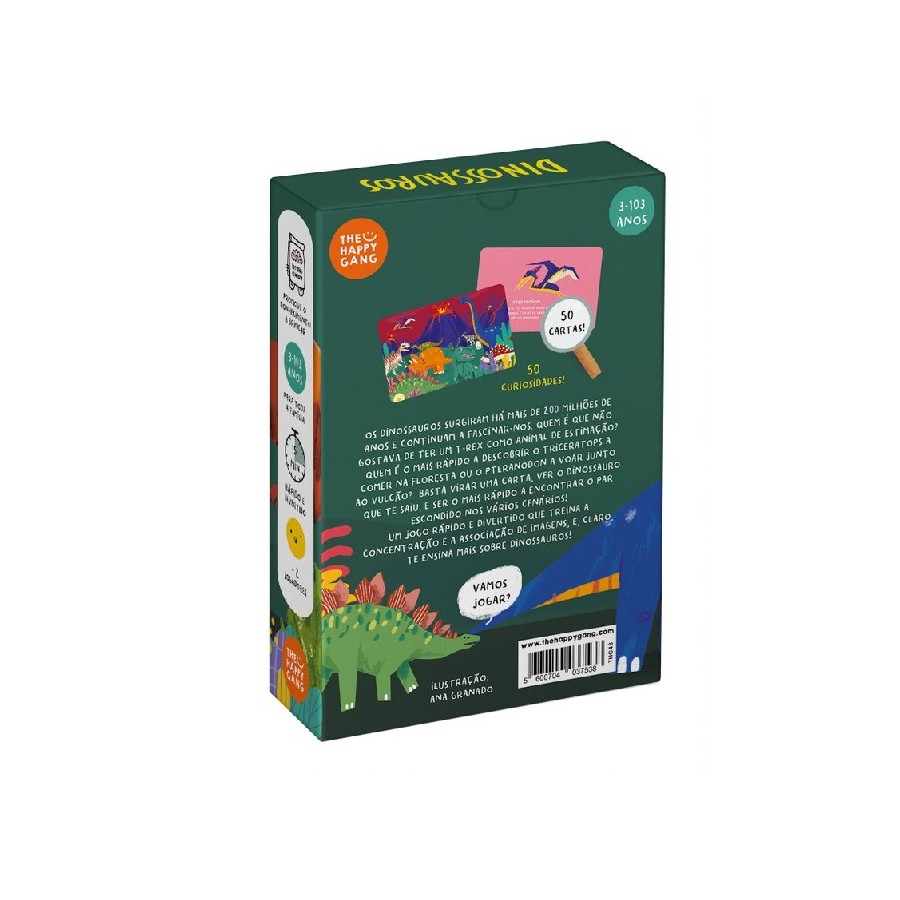 Os dinossauros surgiram há mais de 200 milhões de anos e continuam a fascinar-nos. Quem é que não gostava de ter um t-rex como animal de estimação? Com este jogo vamos ver quem é o mais rápido a descobrir um triceratops a comer na floresta ou um pteranodon a voar junto ao vulcão. Basta virar uma carta, ver o dinossauro que te saiu e ser o mais rápido a encontrar o par escondido nos vários cenários!