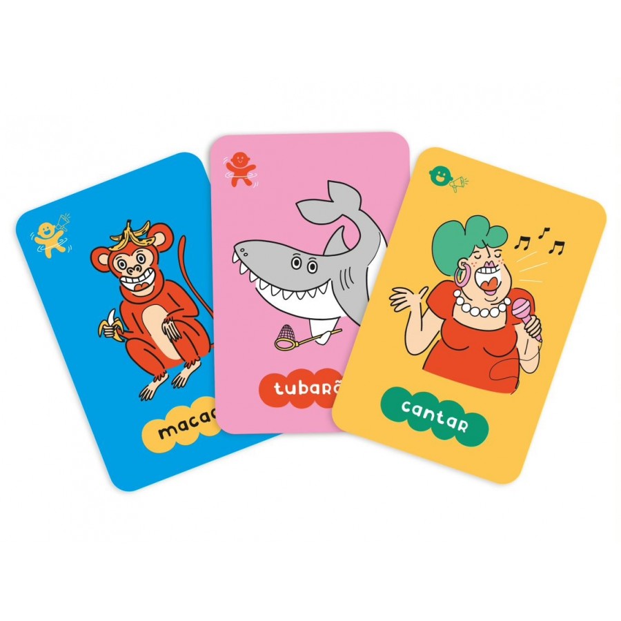 Quem não gosta de macacadas e dar umas boas gargalhadas? Consegues imitar um pinguim a andar? E o som que faz o pato? Um jogo de mímica e sons com cartas ilustradas divertidas que prometem grande animação entre amigos e com a família!
