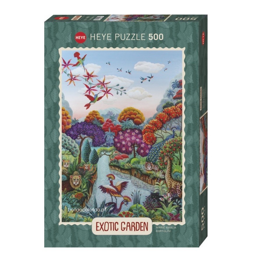 Puzzle de 500 peças, da colecção Exotic Garden, com ilustração de Marie Amalia Bartolini, Dim do puzzle: 35X50 cm Peças cartonadas com a qualidade HEYE