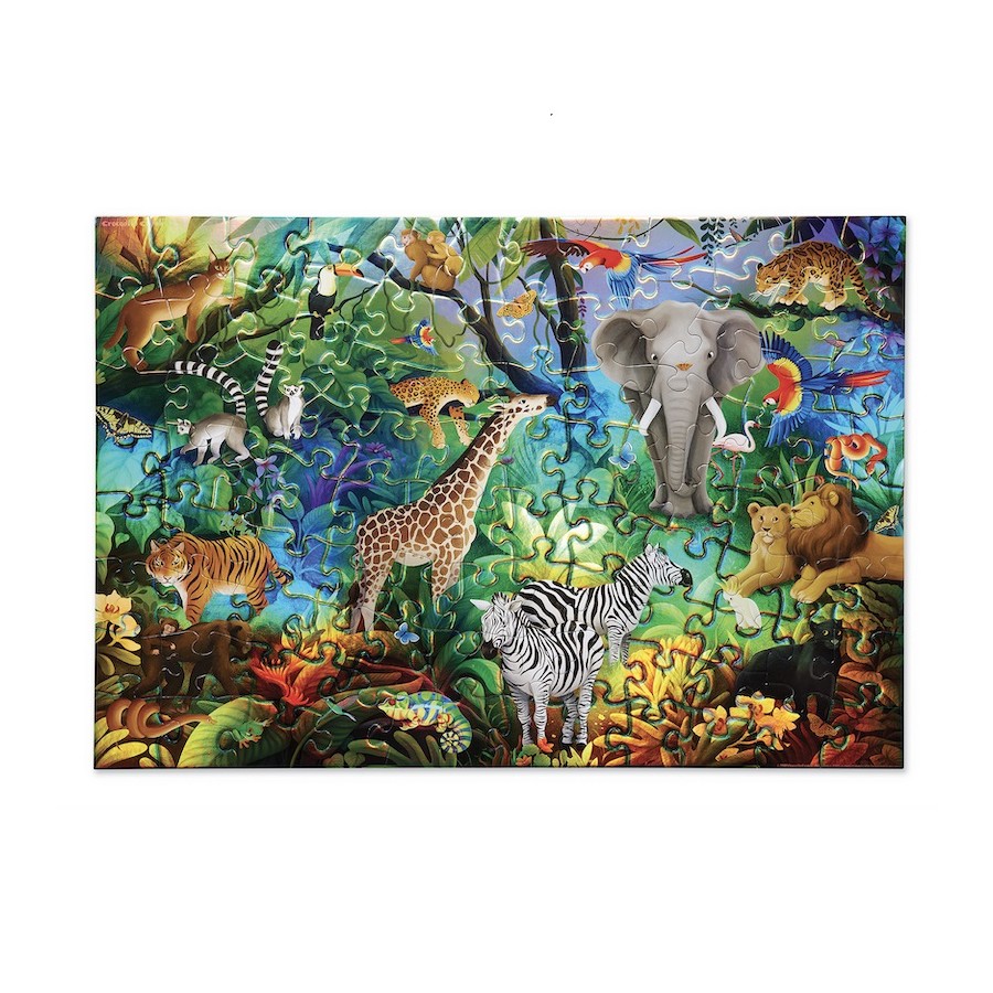 Puzzle de 100 peças, com design original e exclusivo, tema SELVA. Peças muito resistentes e tintas à base de soja. (...)