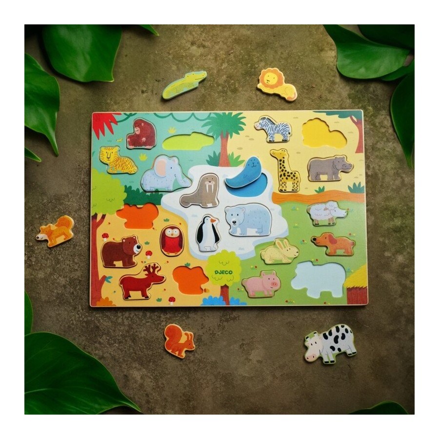 Um puzzle de madeira do tema animais.