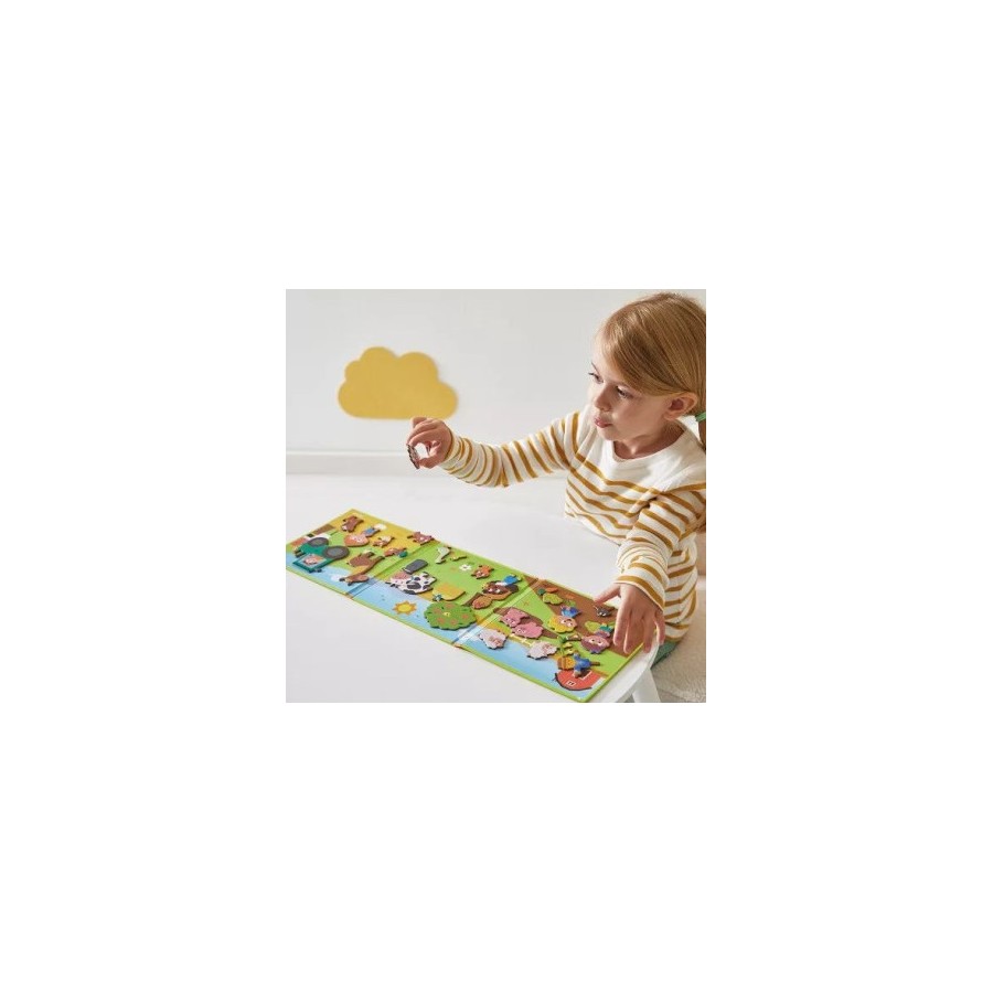 Preparados para construir?! Este jogo magnético irá deliciar as crianças a partir dos 3 anos. Consiste num tabuleiro de fundo colorido com ilustrações coloridas, além de 30 ímanes reposicionáveis. Uma vez colocados, os ímanes vão ganhando vida aos poucos na imaginação dos mais pequenos.