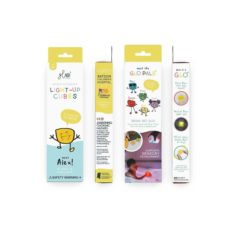 Os Glo Pals ® foram inspirados por uma criança com autismo cuja mãe usou a tecnologia por trás dos Glo Pals ® para ajudá-lo a superar o seu medo de água. A sua história influenciou o desenvolvimento dos personagens Glo Pal ® e nossa missão de criar um produto que envolva as crianças em exercícios sensoriais e alegre a hora do banho.